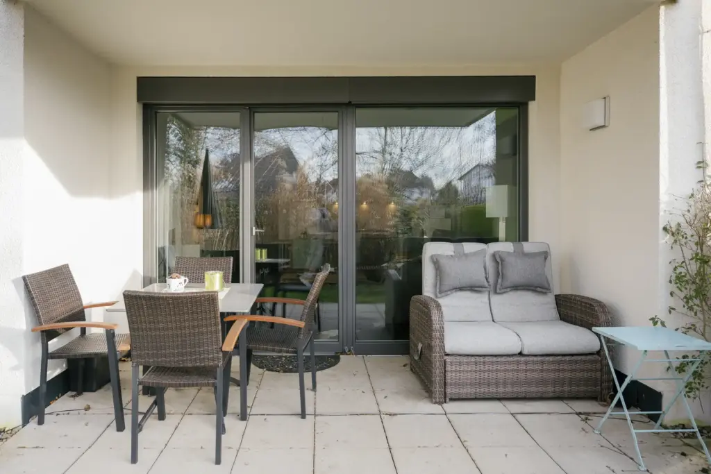 Entspannen Sie in unserer barrierefreien Oase 1 – einer modernen, lichtdurchfluteten Erdgeschosswohnung mit Terrasse, ideal für zwei bis drei Personen.
